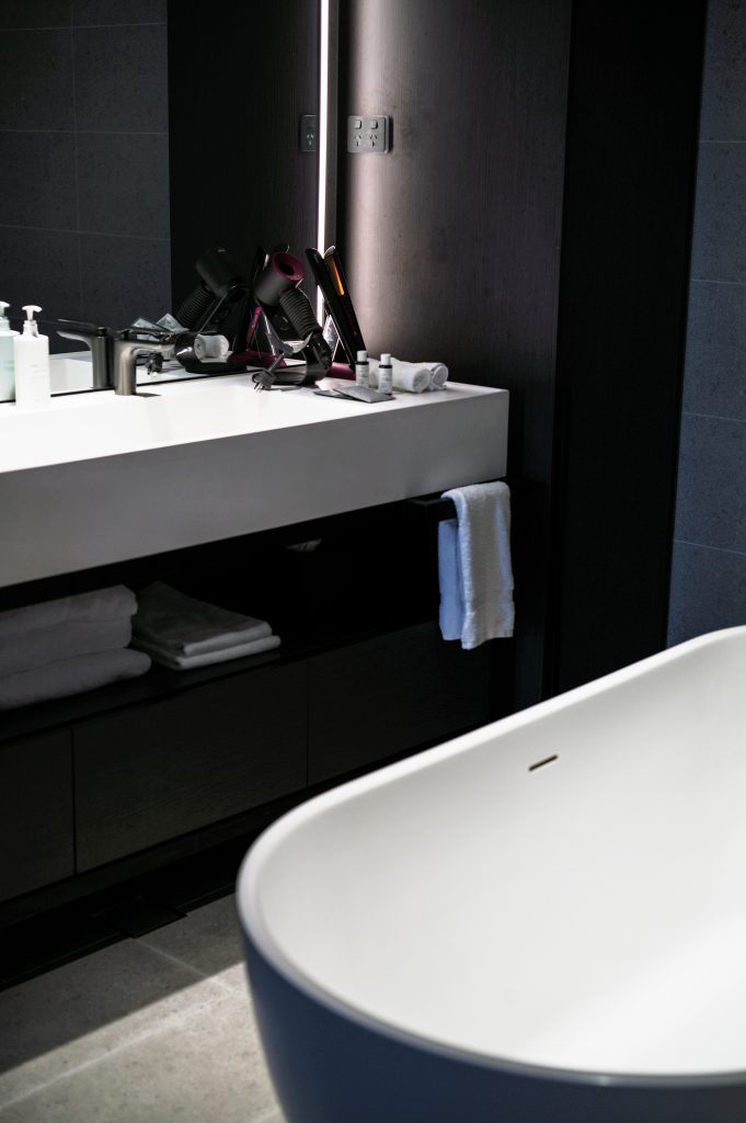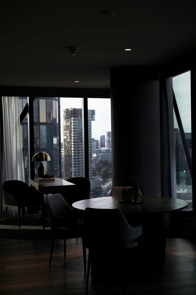 Stepping into the AC Hotel Melbourne Southbank, the design speaks for itself. The lobby — or as the brand prefers, the communal “AC Lounge” — is on Level 7, immediately granting guests an impressive city view. We stayed at the Signature Suite, which is a masterclass in uncluttered luxury. Floor-to-ceiling windows frame a cinematic vista of the city skyline, complete with a pair of binoculars on the desk — a thoughtful, charming detail that encourages the resident to pause and appreciate the view.