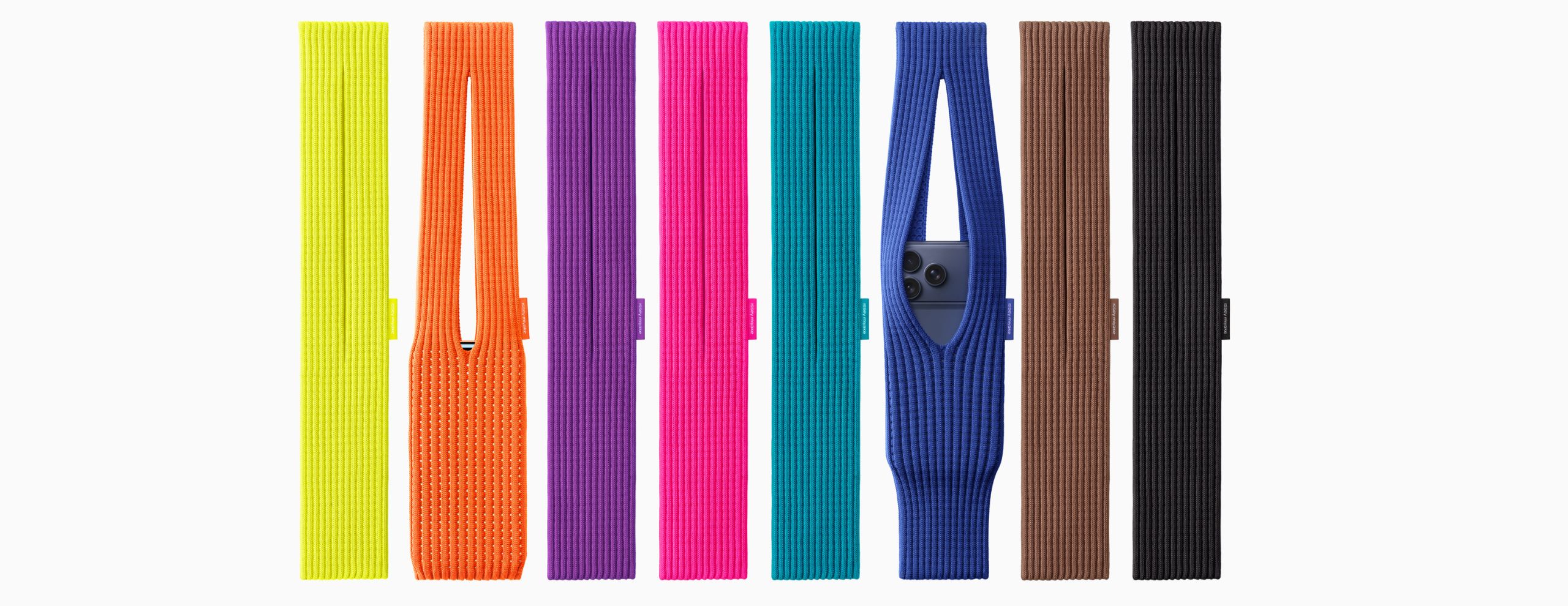 Featuring the qualities of the original pleats by ISSEY MIYAKE and a ribbed open structure, the iPhone Pocket is crafted in Japan, and builds on the idea of creating an additional pocket that fully encloses your iPhone with the ability to expand to fit more of your everyday items.