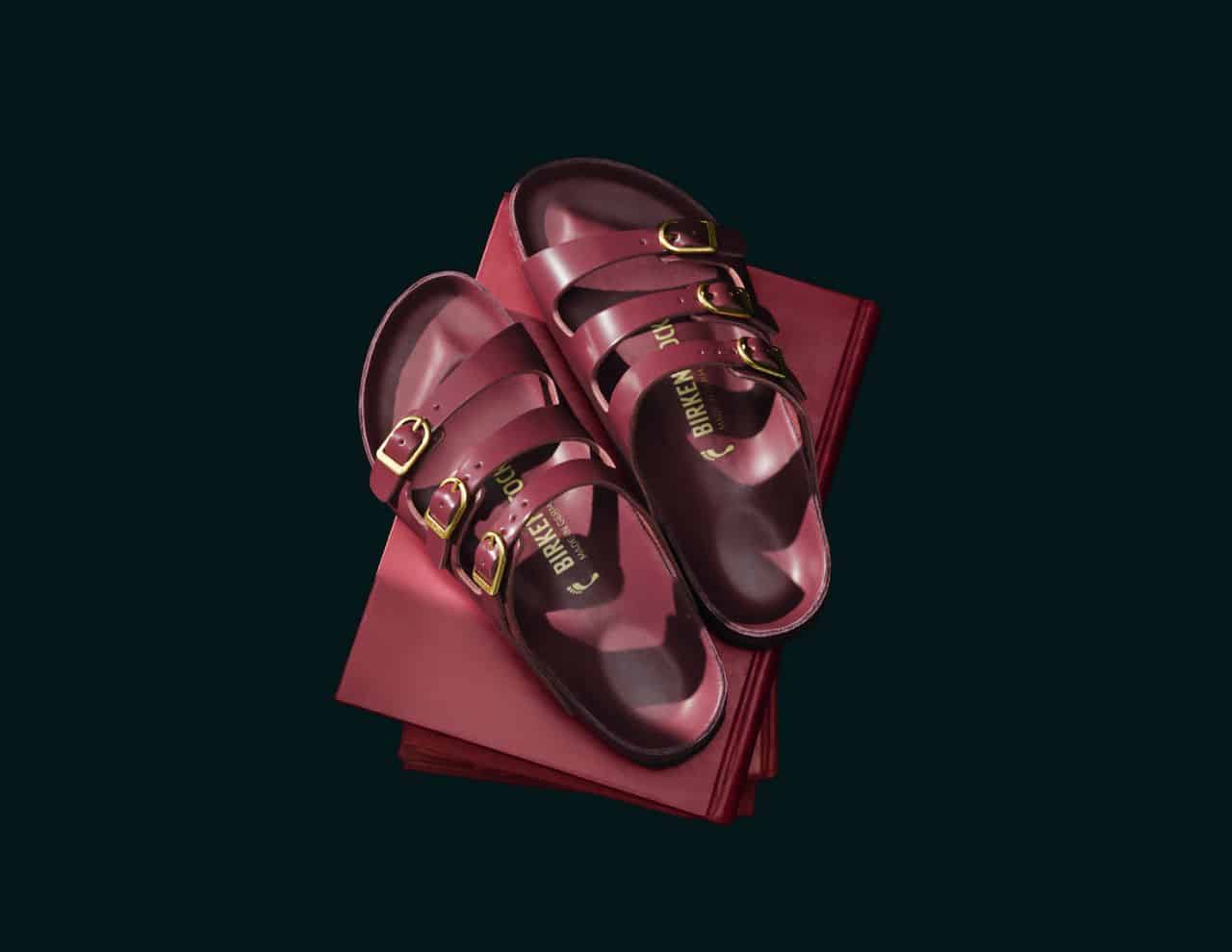 Made from high-shine leather and adorned with three golden D-buckles, the FLORIDA features the original BIRKENSTOCK cork-latex footbed in a deep and expressive Zinfandel red, inspired by the Chinese belief that wearing red brings good fortune and prosperity.