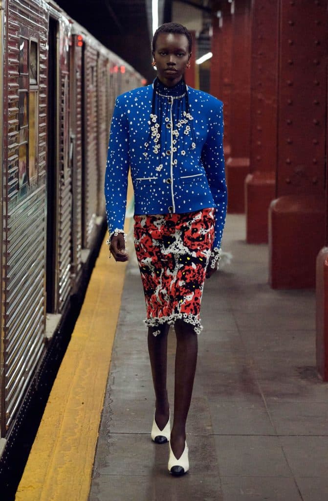 The collection features a joyful cavalcade of personalities which seemingly mirrors the everyday lives of commuters on the subway. From the teens to the old folks, ladies who lunch to mothers on-the-go, working girls and showgirls, and even socialites and superheroes; every look is seen through a filmic lens, representing all the glitter and grit of the Big Apple, both in reality and in the imagination.