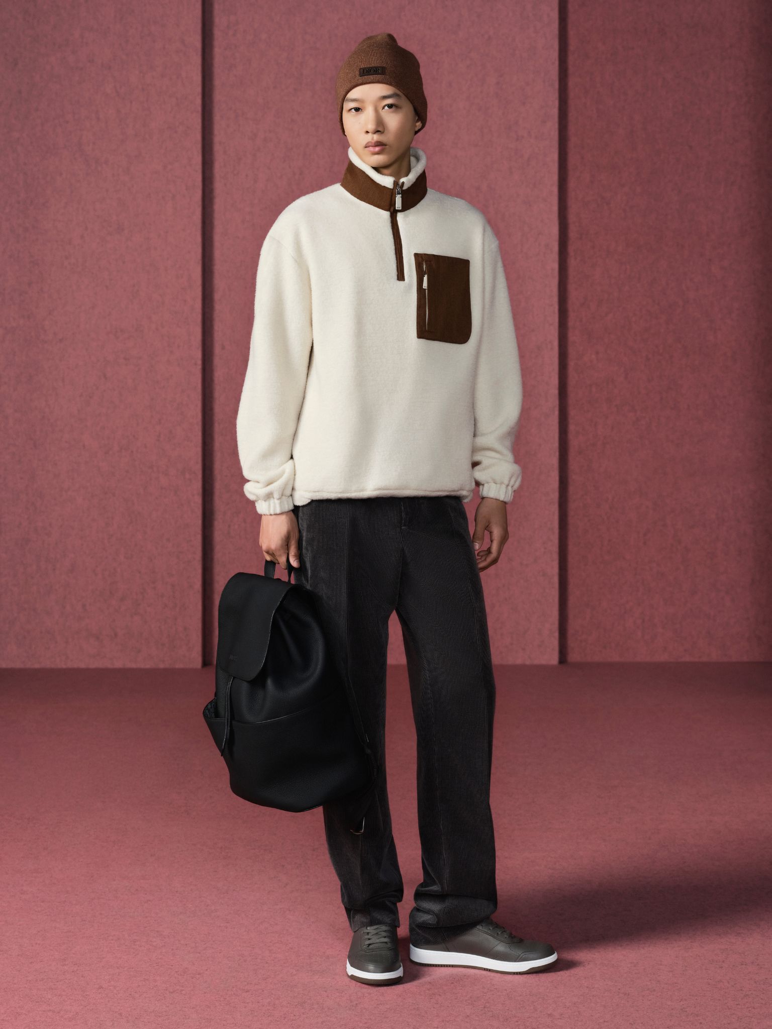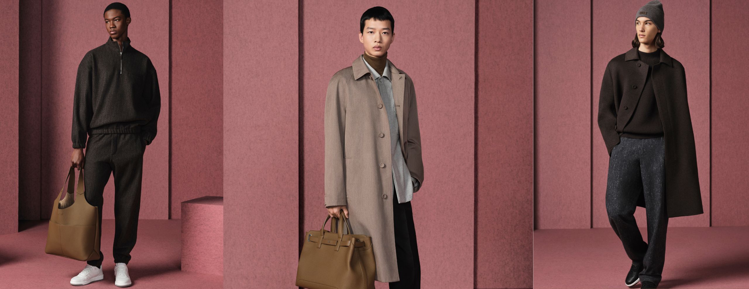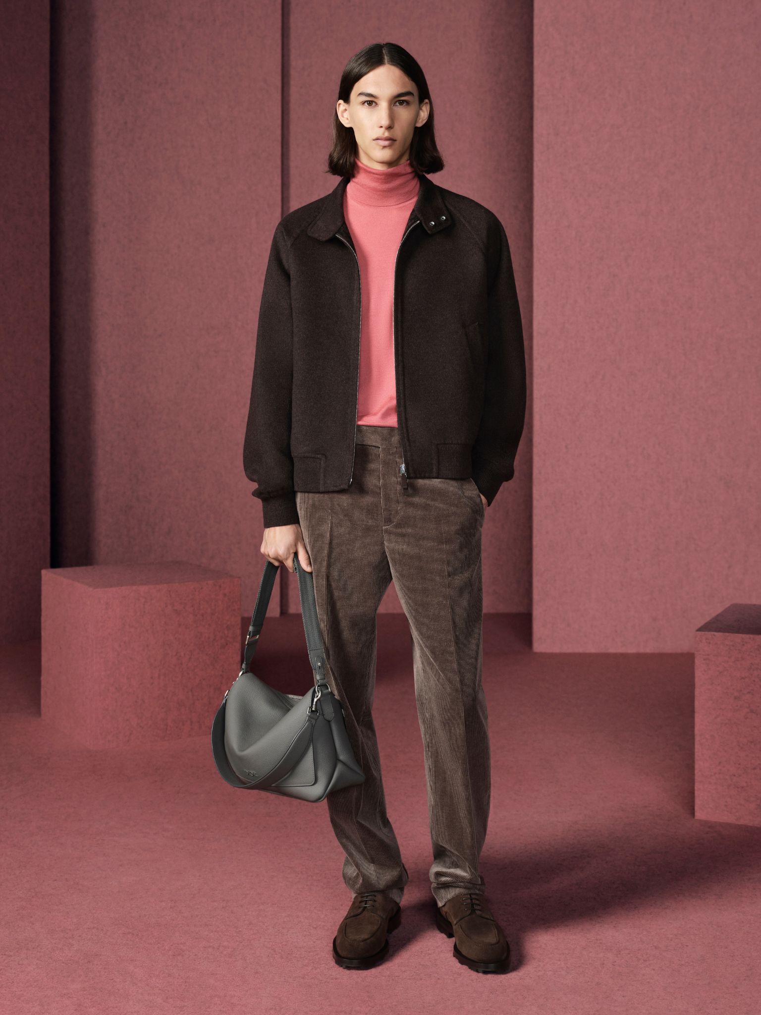 The contemporary silhouettes are combined with a harmonious palette ranging from coral light and dark brown, white to gray and blue, and materials that enhance these unique pieces such as cozy knits that are adorned with cashmere, and shirts crafted from silk and wool.