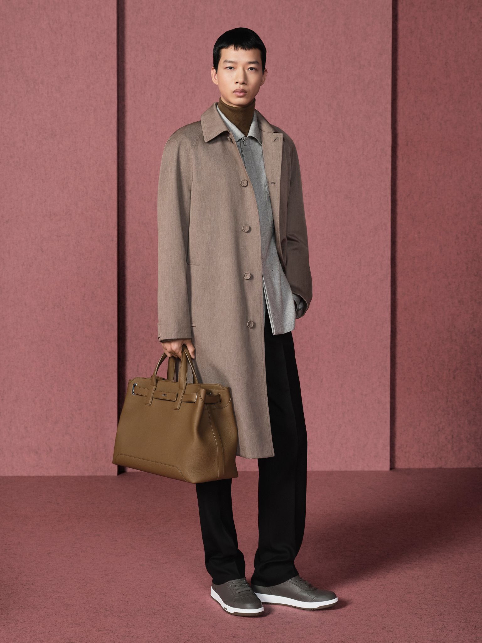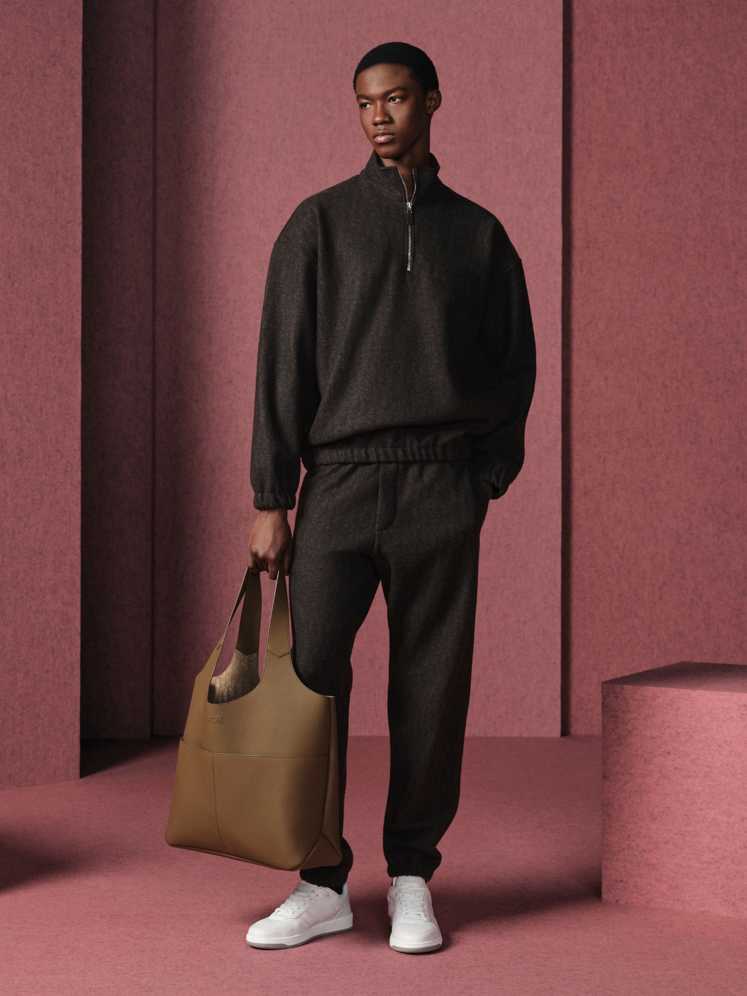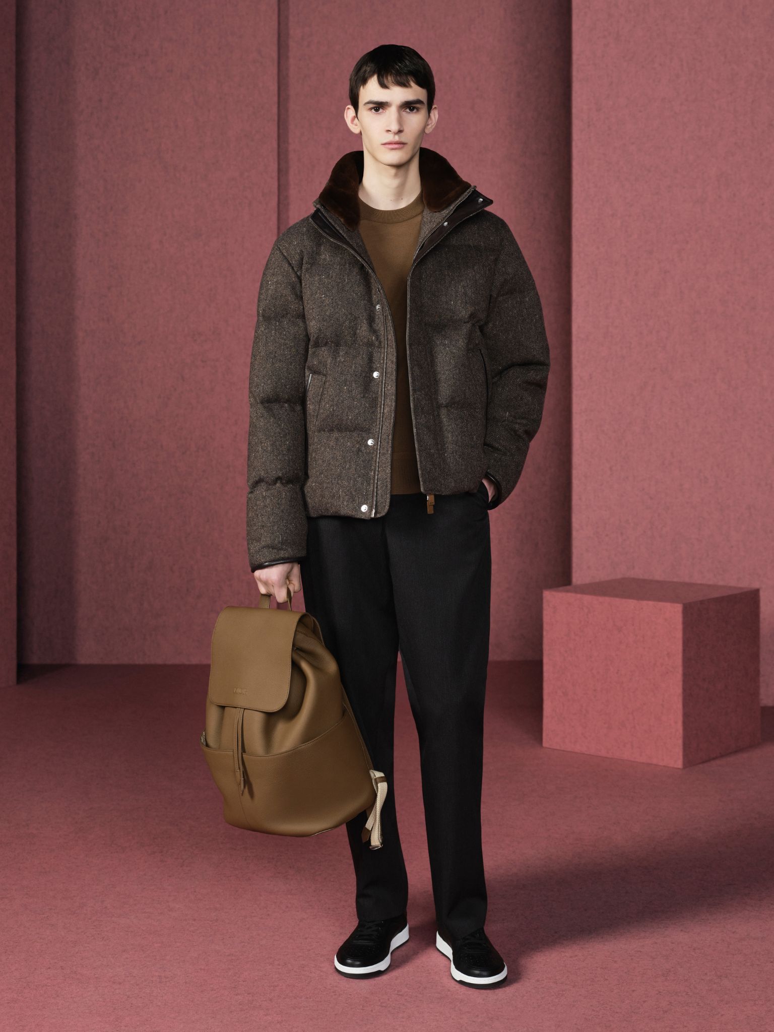The contemporary silhouettes are combined with a harmonious palette ranging from coral light and dark brown, white to gray and blue, and materials that enhance these unique pieces such as cozy knits that are adorned with cashmere, and shirts crafted from silk and wool.