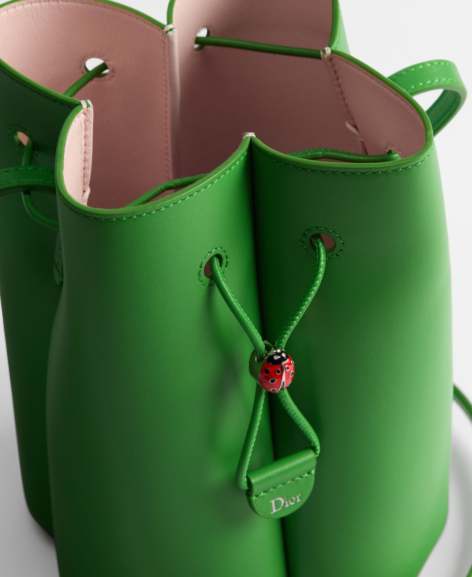 Available in a range of bright colours, the bag features a drawstring closure that is punctuated with a ladybug or bee, and opens to reveal a compartment enhanced with contrasting lining, alongside an adjustable shoulder strap for different carrying options.