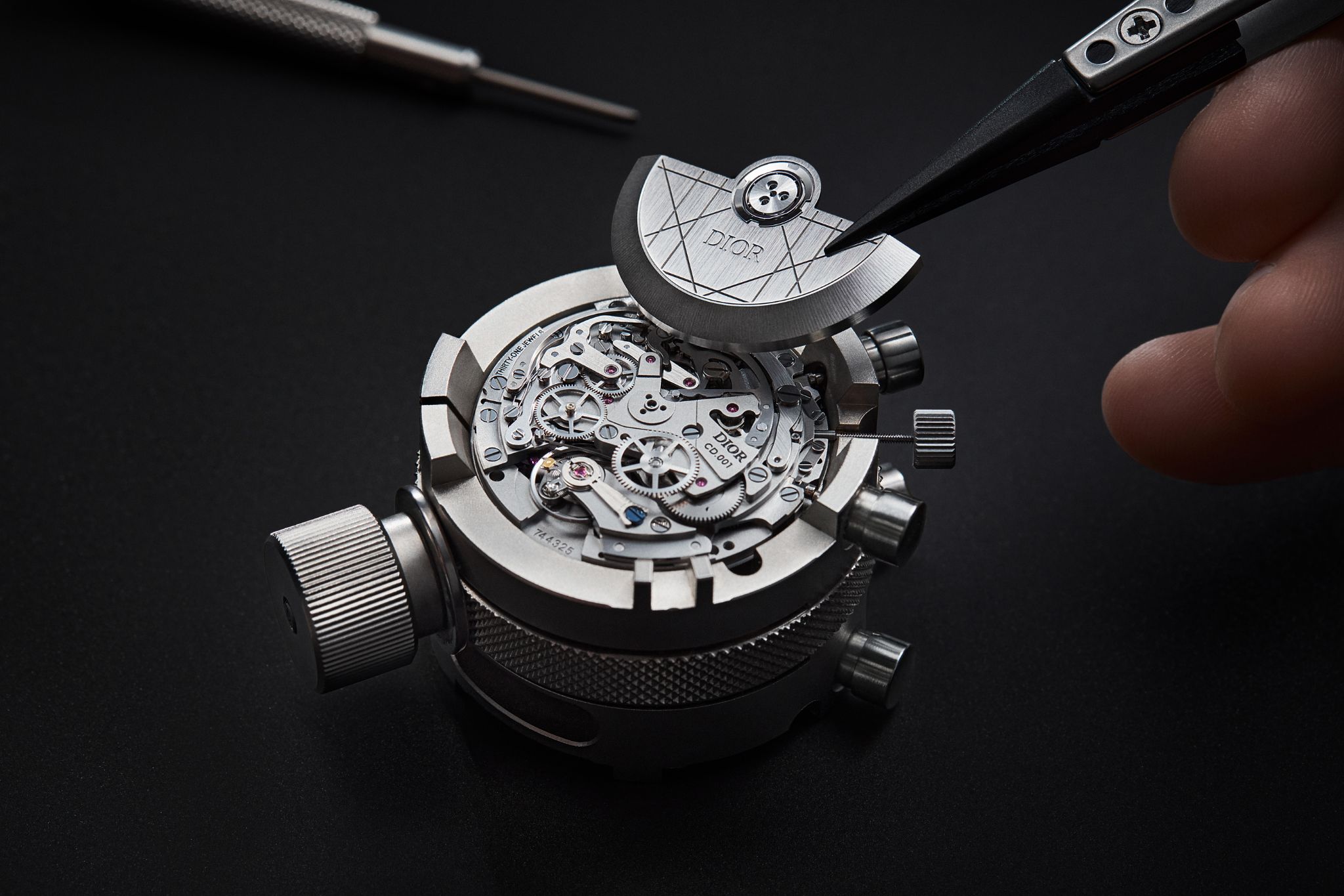 On the back, behind a transparent red sapphire crystal, you’ll find a rotor adorned with the Dior logo as well as emblematic graphics. This model is also crafted in a 41mm chronograph version, and both designs are limited to 150 pieces.