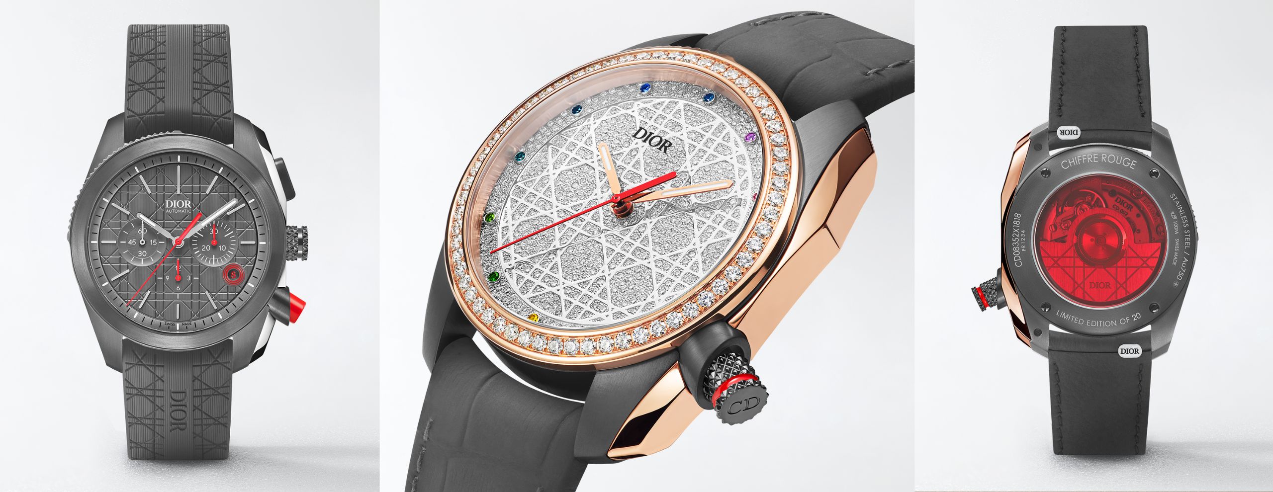 Embellished by Dior’s most iconic codes, the watches in the Chiffre Rouge line are between tradition and transformation, complete with the boldness that is asserted with a red second hand, an intense shade that Christian Dior himself considered the “colour of life”, alongside his lucky number, the figure eight, and a crown that is enhanced in the red vibrant hue.