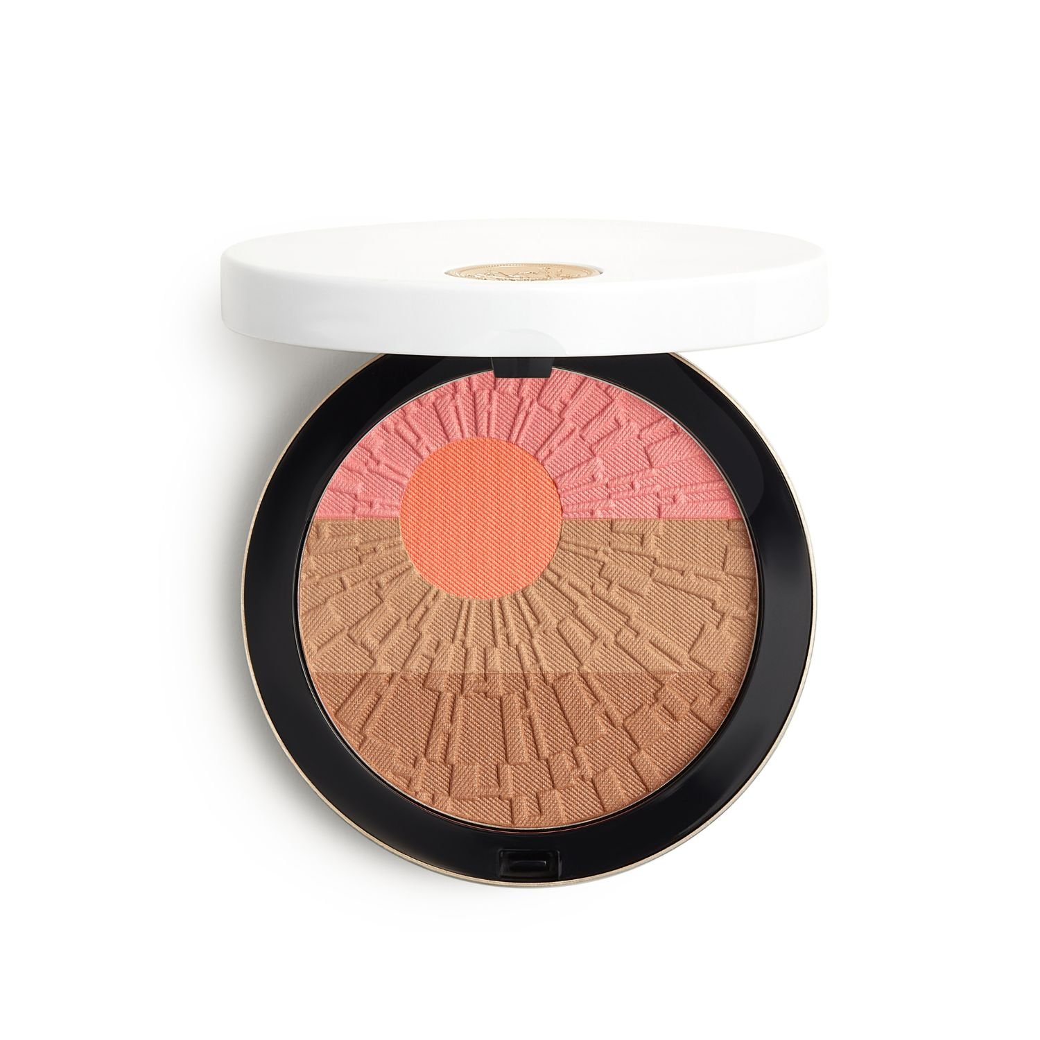 Available in the large version of the case designed by Pierre Hardy, creator of Hermès Beauty objects, the Soleil d’Hermès powder ($185) is the centrepiece of the collection, bringing you soft shades that reflect the colour gradient of a sunset in an intricate pattern that evokes the sun’s rays.