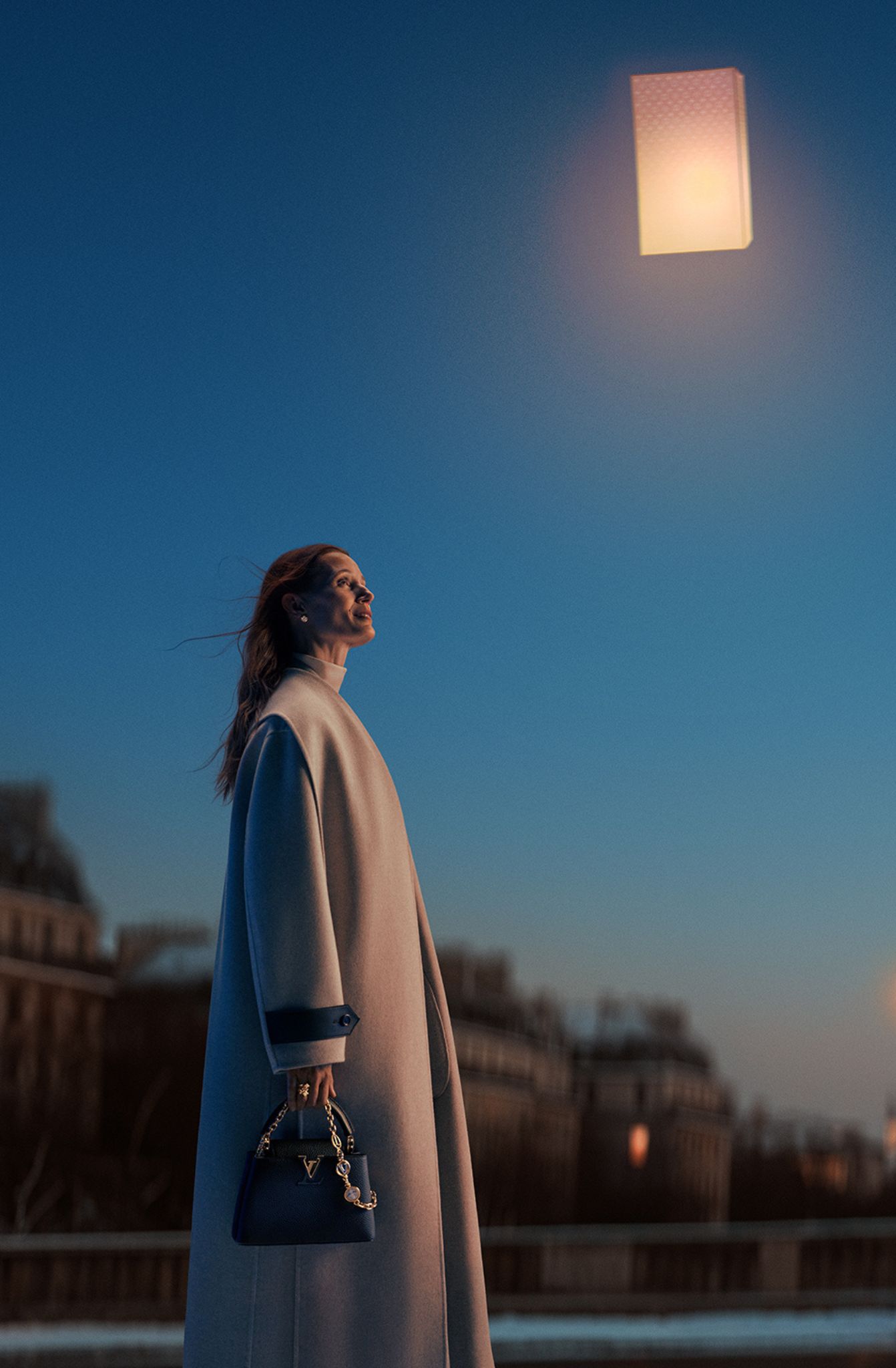 Throughout the campaign, you’ll find iconic pieces from the House’s collection artfully showcased and woven into the narrative such as the timeless black My Capucines handbag, the vibrant Speedy P9 in red, the sophisticated Side Trunk and Speedy in Monogram, the adventurous Christopher backpack, the versatile Express Bag, and the alluring Imagination and Attrape-Rêves perfumes.