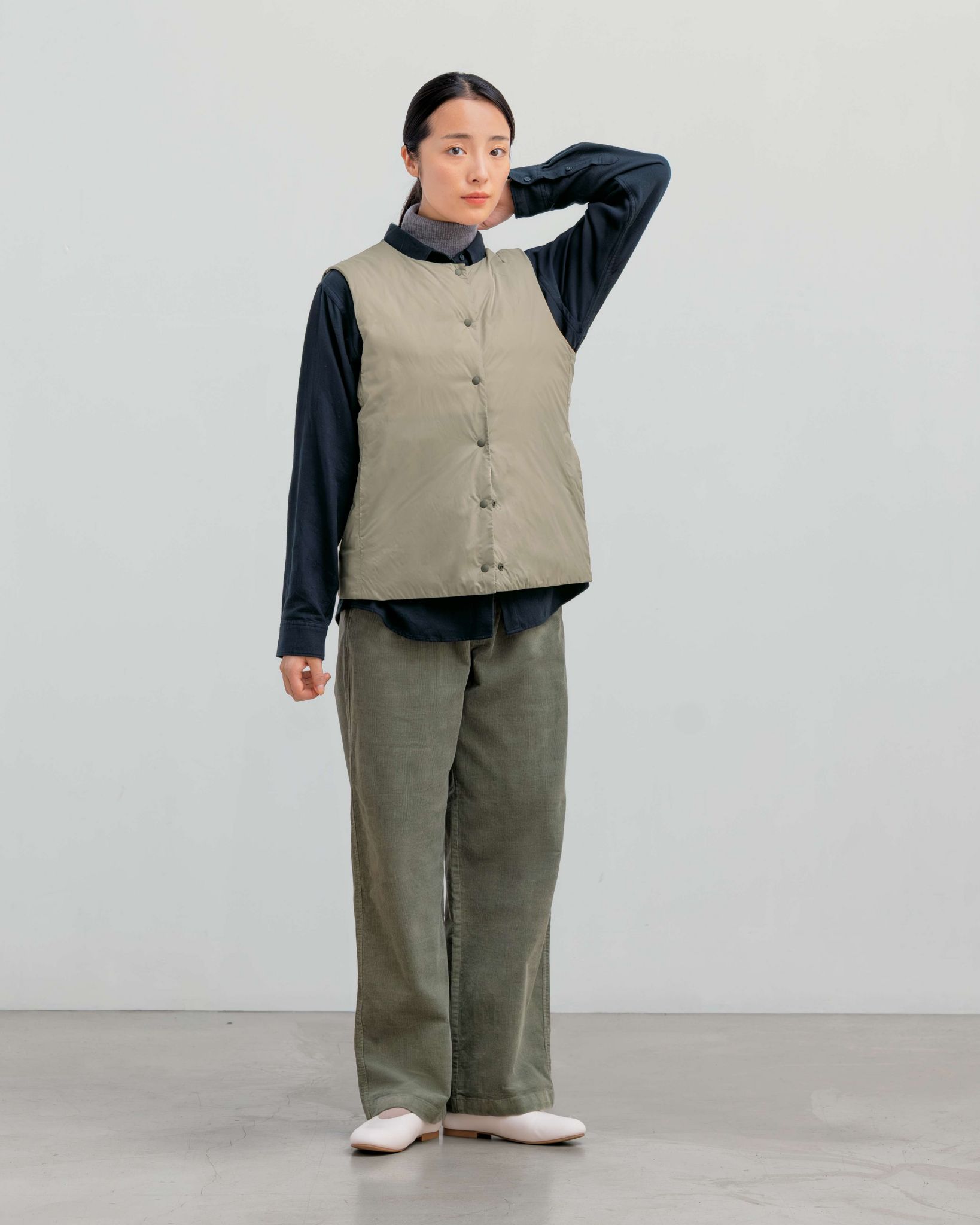 For the women’s vest this 25AW season, the design has been updated to feature less seams to prevent rain and the cold air from entering, as well as to prevent fraying and the down from escaping. It also helps reduce bulkiness for a neater look.