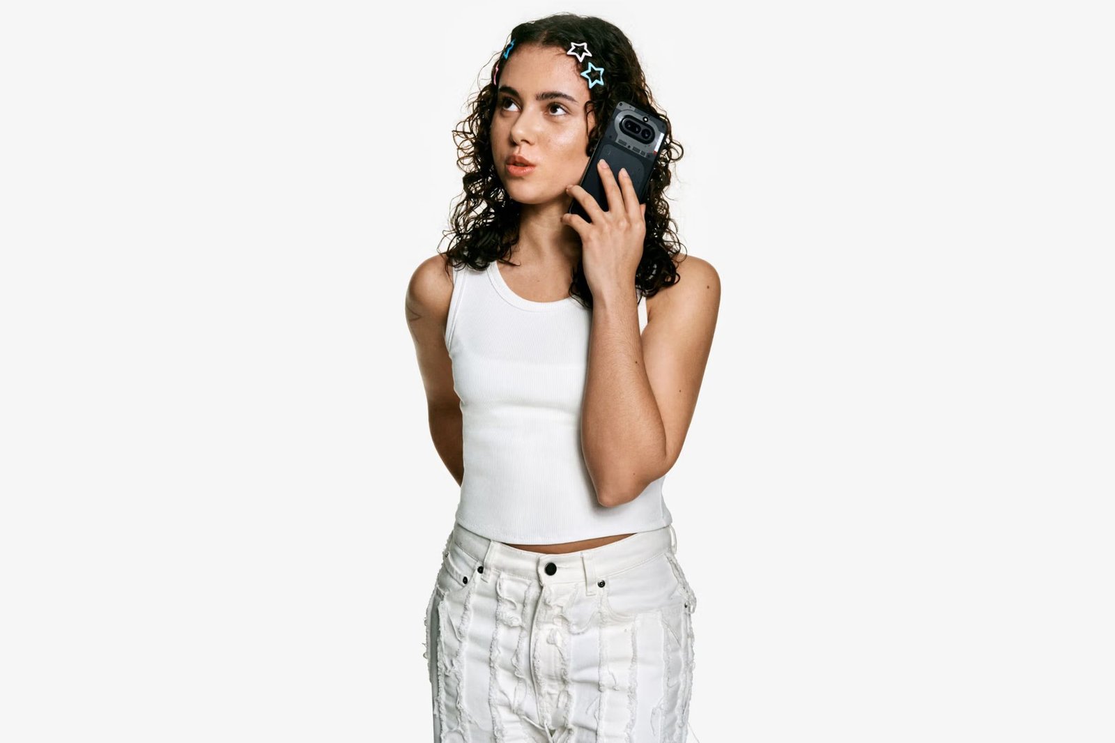 The signature transparent design you see, integrates both the camera and the Glyph Matrix, seamlessly fusing with the metal unibody to create a smooth, gapless finish that refracts light.