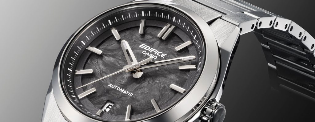 CASIO releases its first-ever mechanical movement timepiece featuring forged carbon as part of EDIFICE line