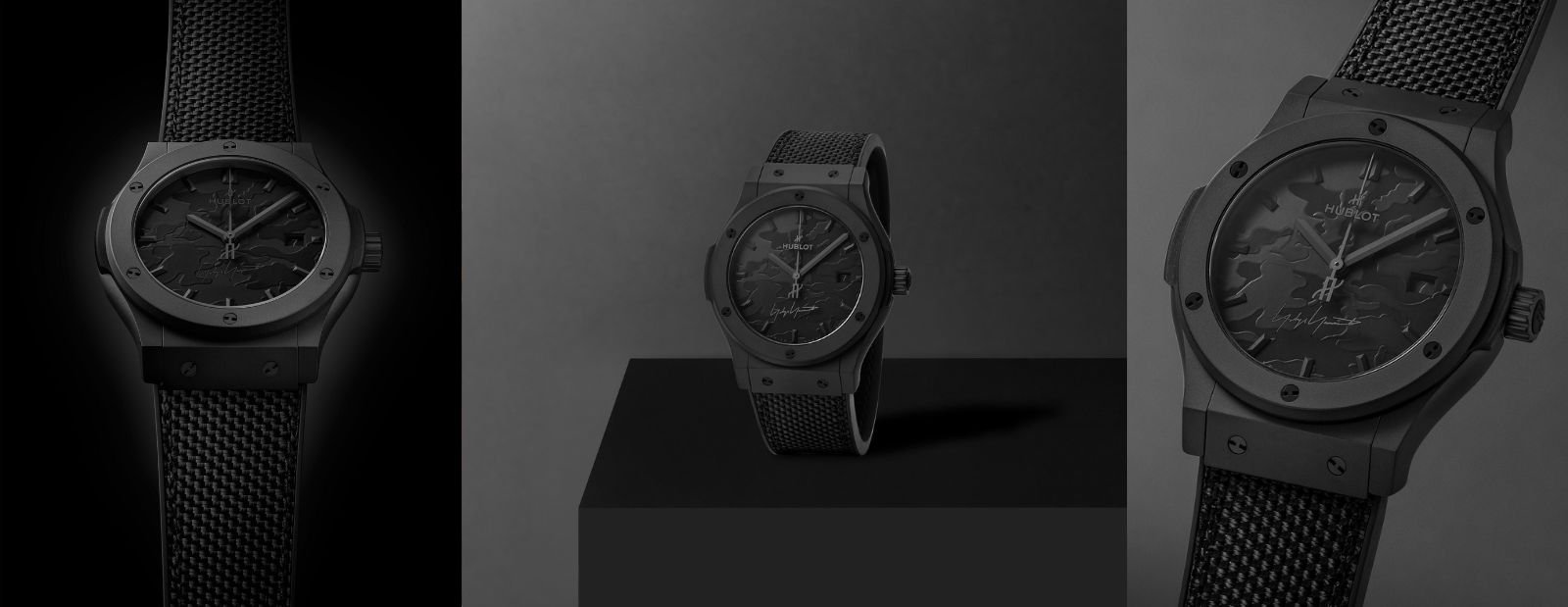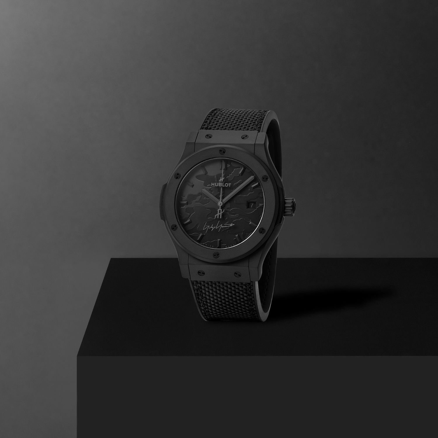 The Classic Fusion Yohji Yamamoto All Black Camo is available at a selection of Hublot points of sale and online at hublot.com.